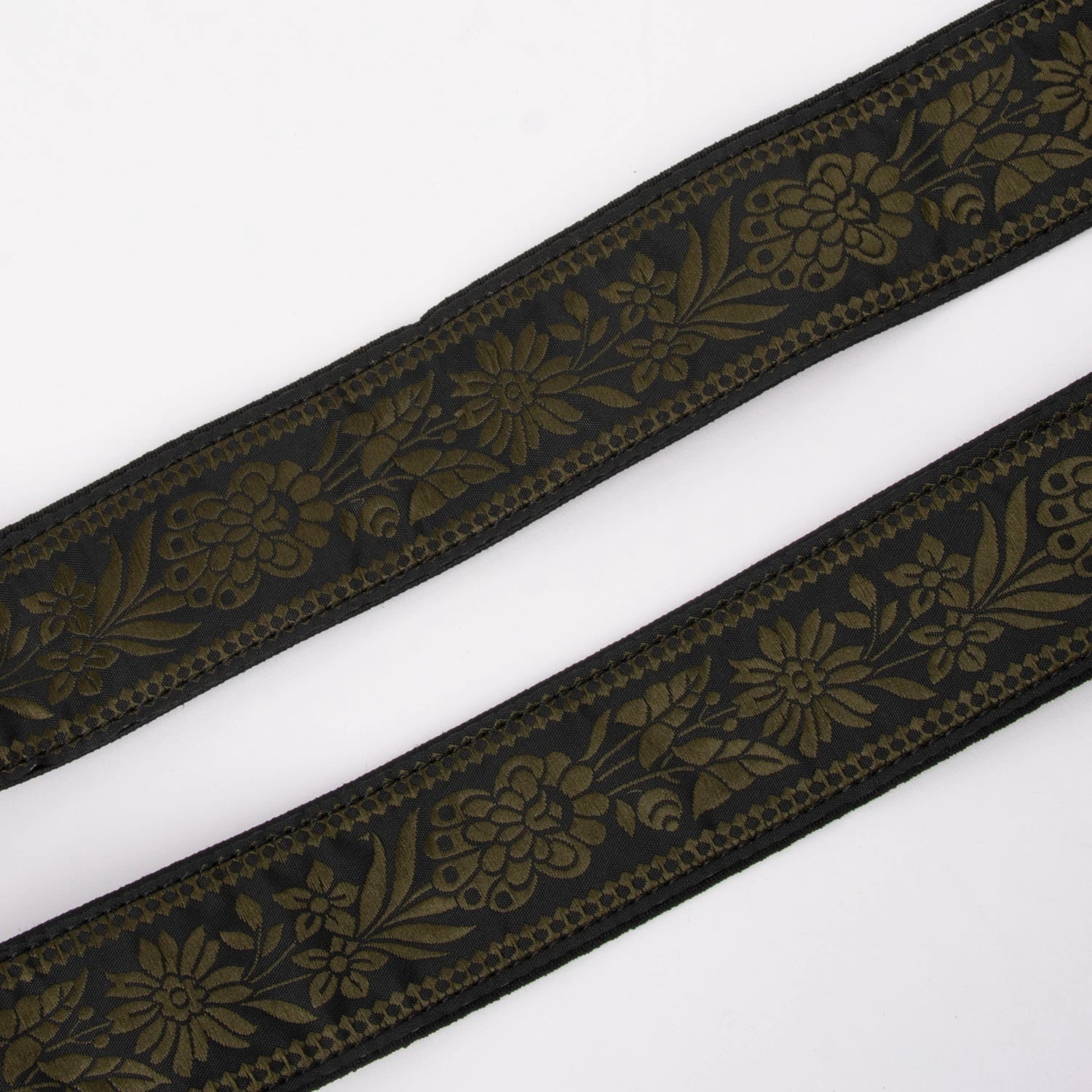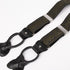 Bukseseler med jacquardvevd bånd. Lengden kan reguleres med sølvbelagt spenne. Elastisk strikk på ryggpartiet.