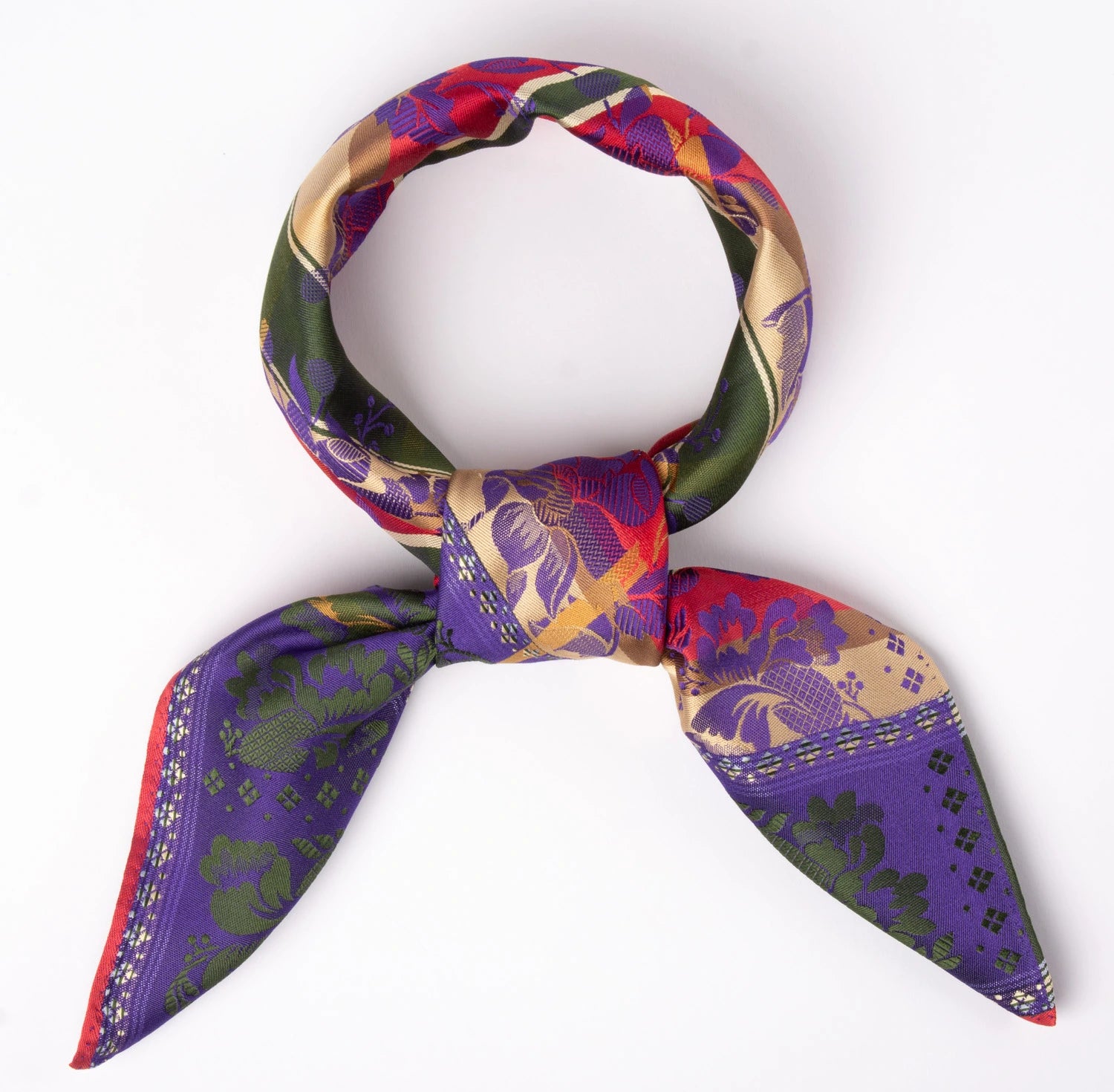 Jacquardvevd skjerf i 100% silke. 70x70cm.