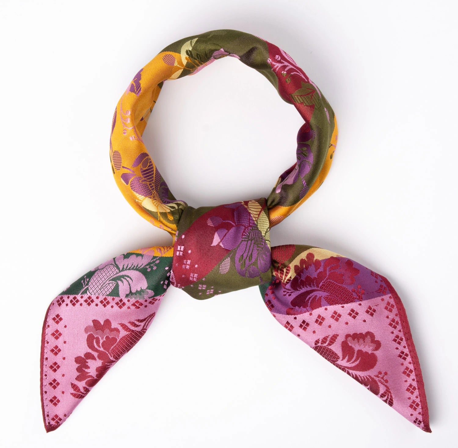 Jacquardvevd skjerf i 100% silke. 70x70cm.