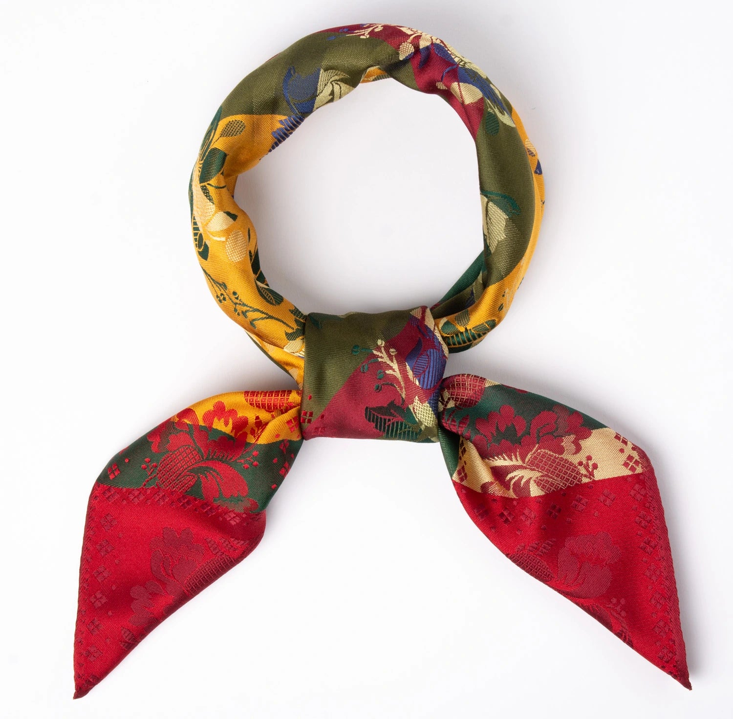 Jacquardvevd skjerf i 100% silke. 70x70cm.