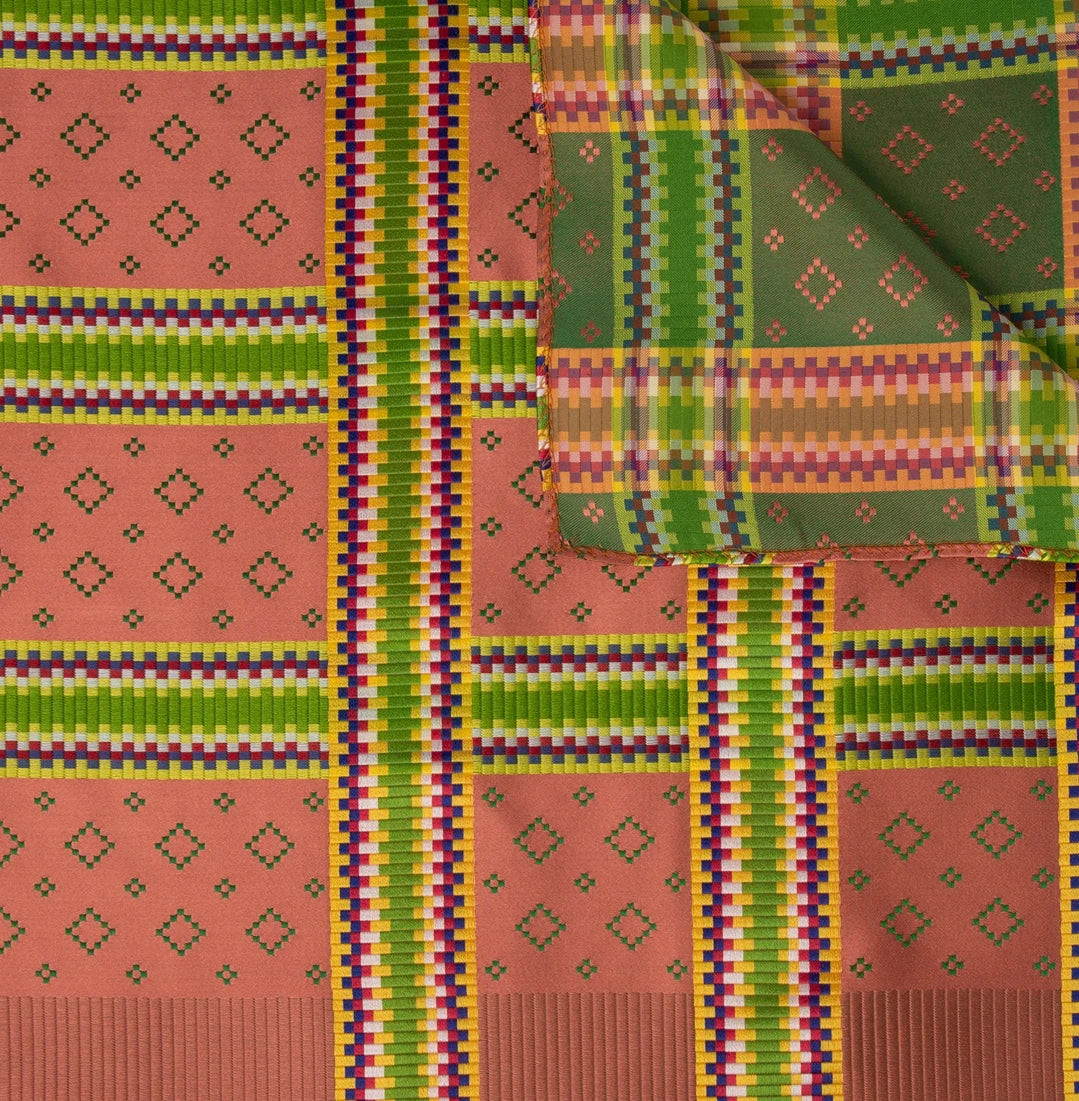 Stort silkeskjerf med fargerike border.