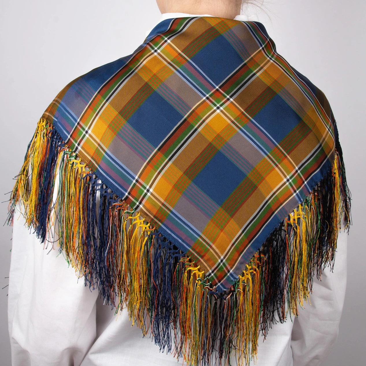 Siri Nordland Silkeskjerf Frynset ⎮ 65x65cm ⎮ Blå Oransje