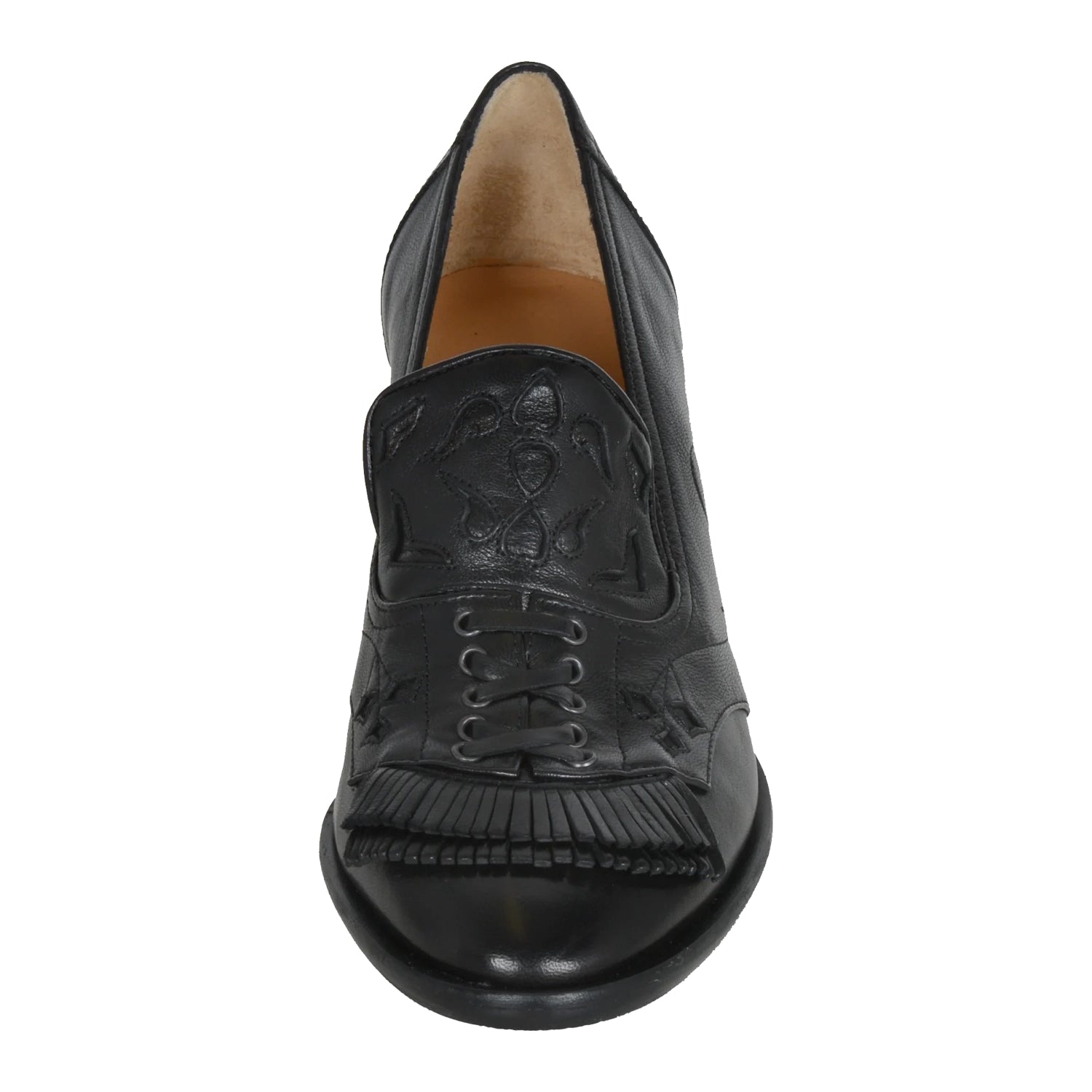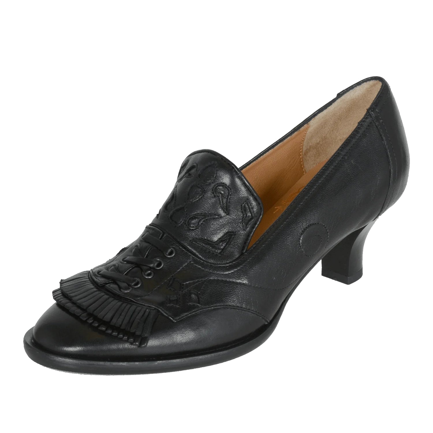 Bunadsko i mykt skinn. Flotte dufser foran og høy hel. Sort skinn.